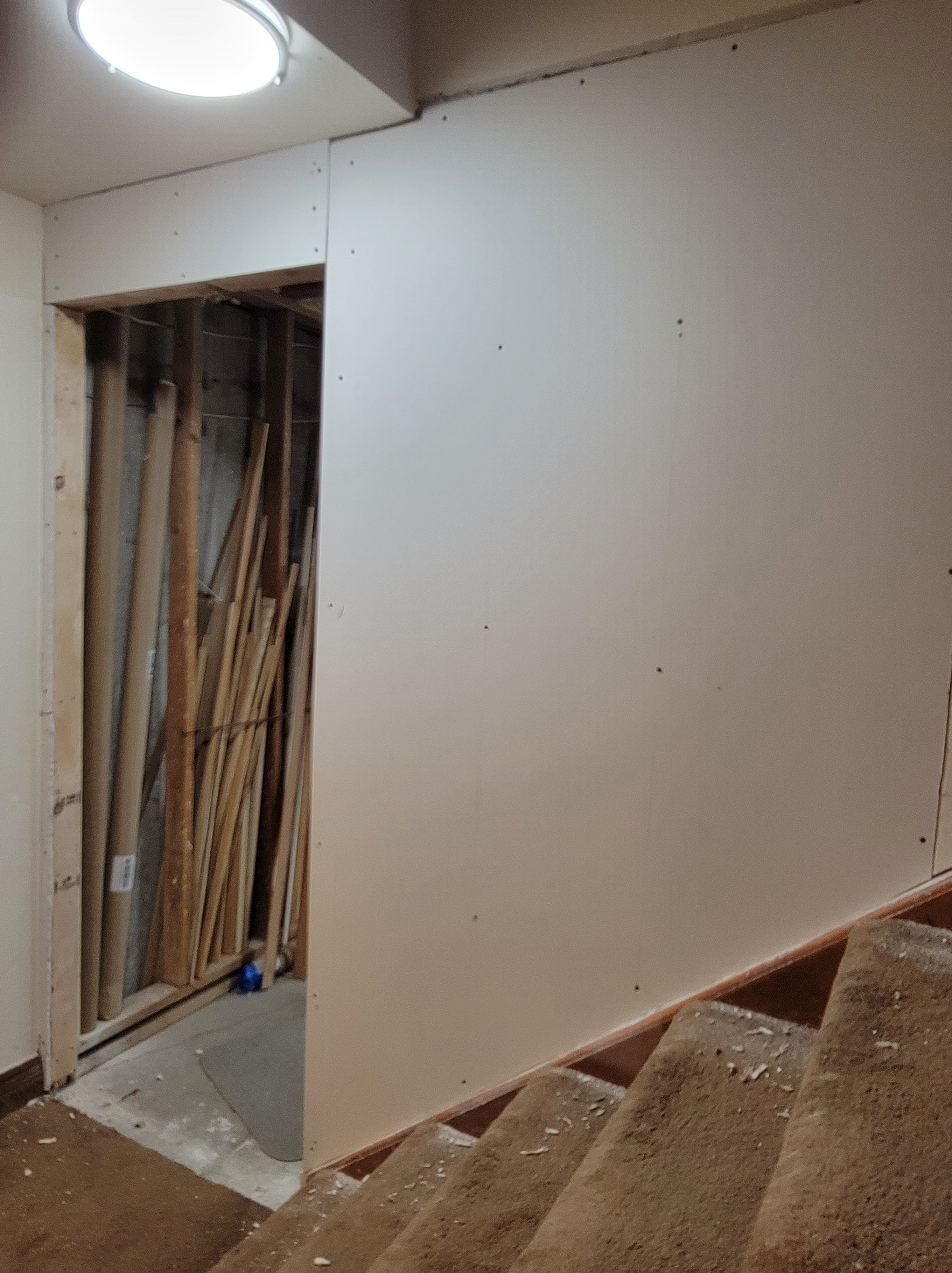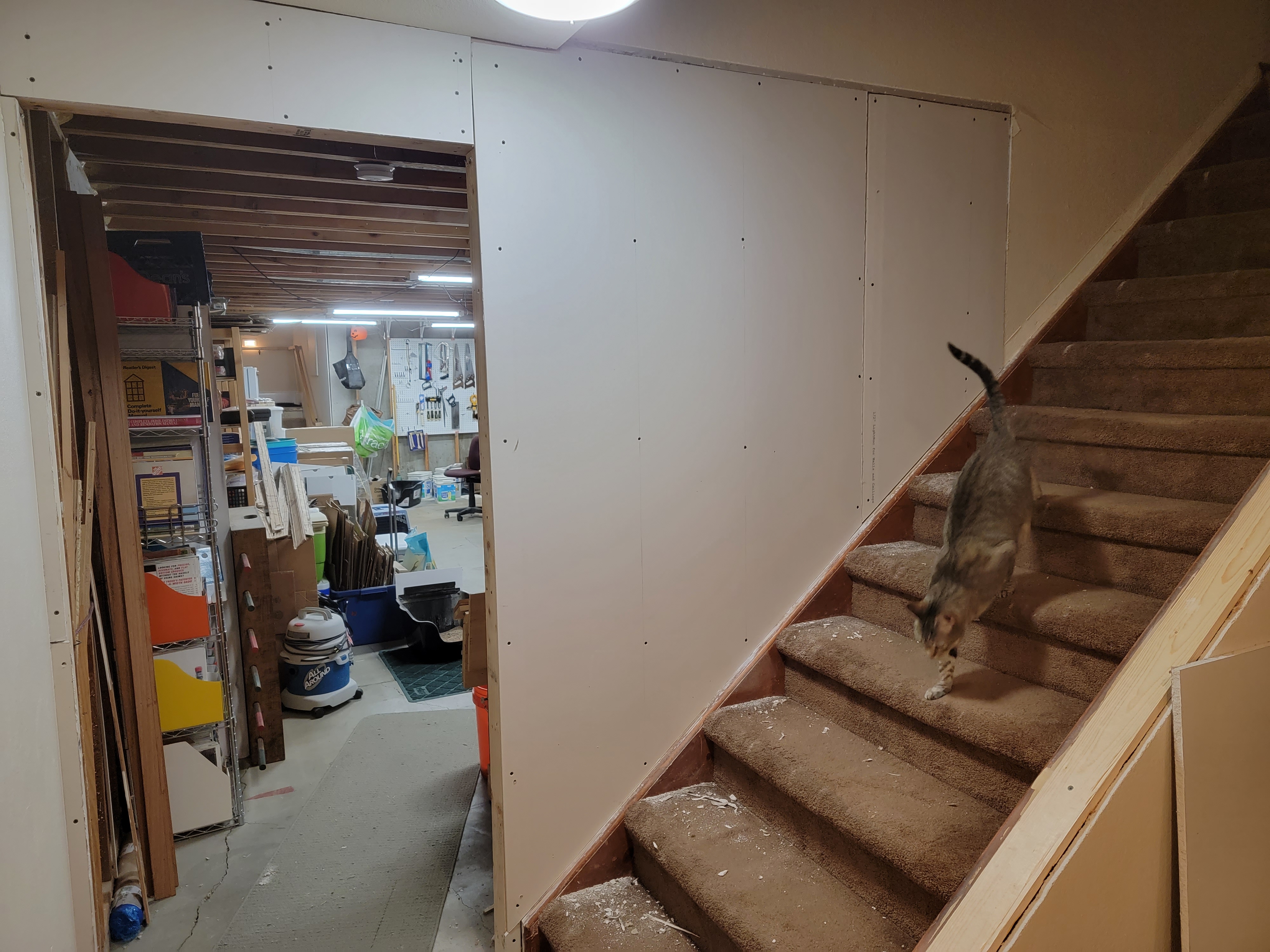 Programming Note: I’m hiring a contractor to mud and texture. I’ve done this in the past; I can mud but texturing requires skill and tools that I’d rather not deal with. The next post will be delayed since it’ll depend on the contractor’s availability.