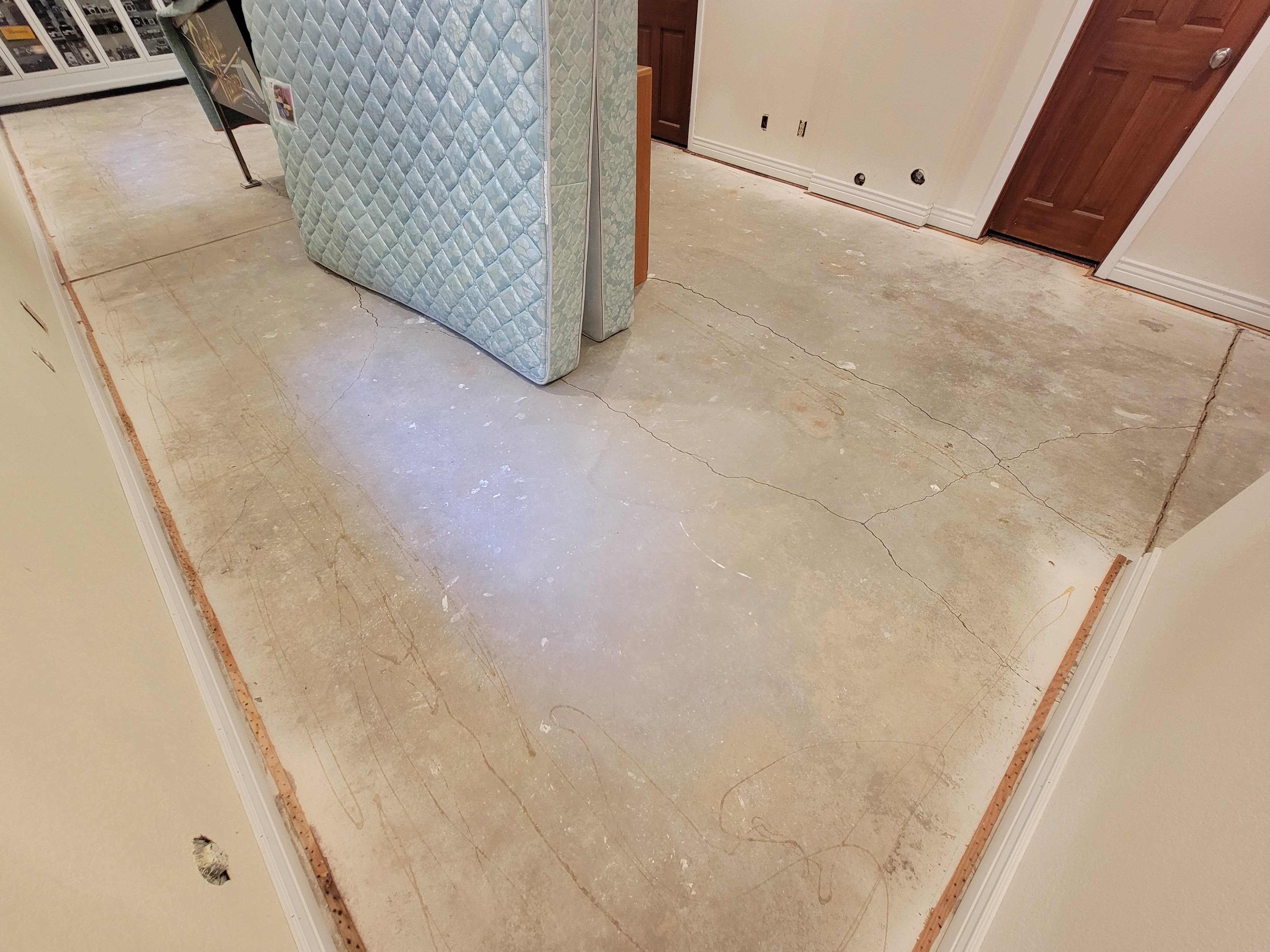- I removed the baseboard and got the spacers out of the way, then laid the baseboards back in place.
