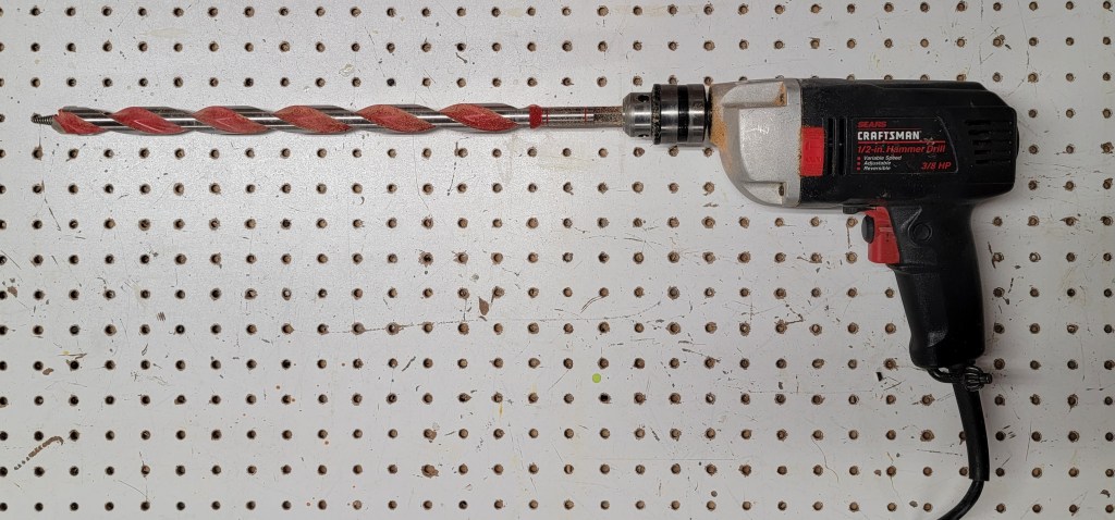 I purchased a 7/8″ 17 1/2″ auger bit for my old 1/2″ Craftsman heavy drill.