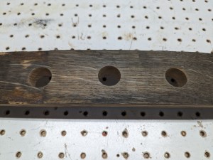 A good problem to have: running out of spots on your stave for your second set of Blanton’s Original Single Barrel stoppers.* But, with a stave, drill, and Forstner bit that’s a problem easily solved.
