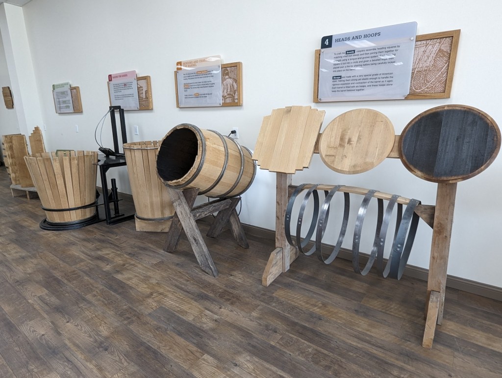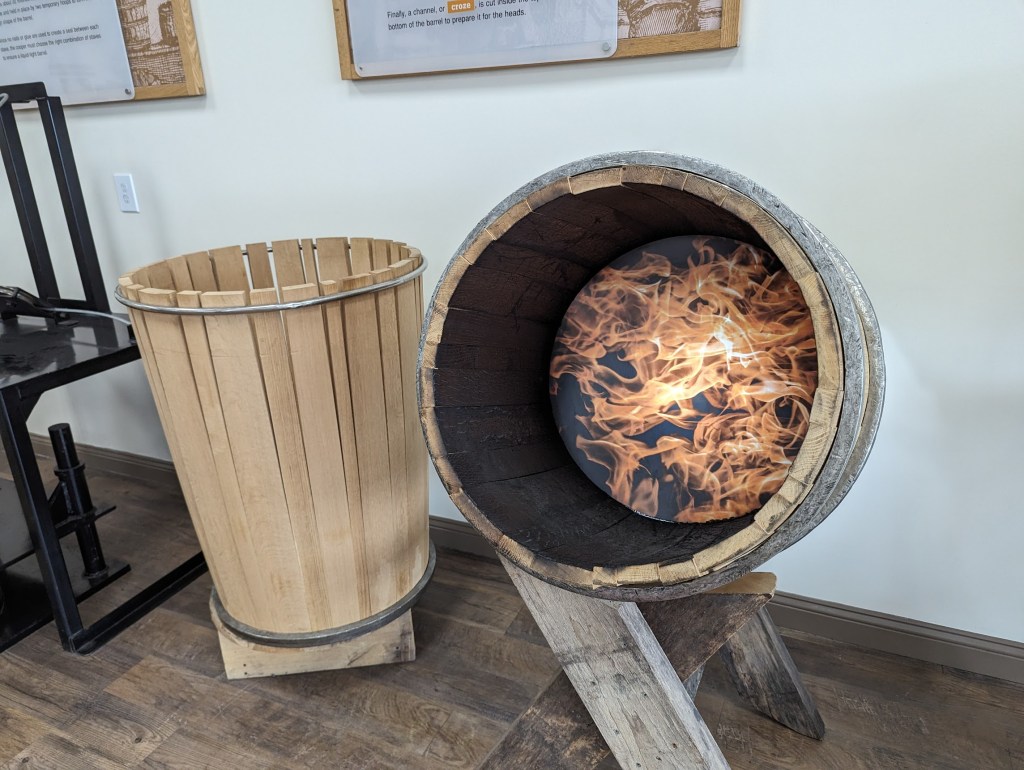 - Any distillery tour should include a cooperage stop to learn about the barrel making process. At first glance barrels all look the same, but when you learn about wood variations, toasting, and charring, and the differences that can be made in the head (top / bottom) vs staves (sides) you gain an appreciation for how differentiated, proprietary, and secretive the process is. Some distilleries have their own cooperage (exa: Old Forester), but most purchase or lease barrels from an independent cooperage like ISC. Kentucky Cooperage doesn’t allow photos inside the factory, but you can take them in the visitor’s center prior to the tour. From there you take a van across the street, and make walking stops to see barrels steamed, assembled, charred, and inspected. Charring is fun because you can watch the flaming barrels rolling down the rails before they belch smoke onto the tourists. The entire visit takes about an hour.