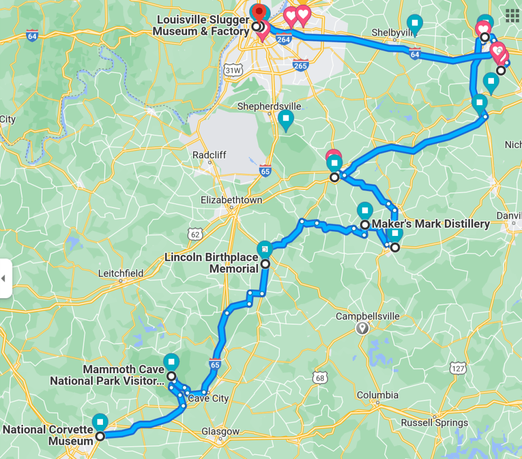 We approached Kentucky from the west, so we made stops at popular sites that would whet our appetites for distilleries later (pun intended). Heading southeast from Evansville…