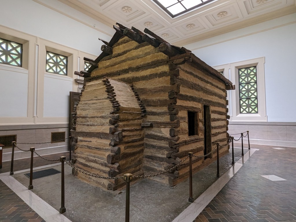 - We stopped by Abraham Lincoln’s birthplace late in the day. After a stop at the visitor center (and a short film) we walked up the 56 steps (one for each year of his life) to the Memorial Building to see [a replica of] the cabin where Abe was born. The ‘Sinking Spring’ was roped off while we were there. All sites are free and don’t require tickets. The Boyhood Home is about 10 minutes down the road, but we were too late in the day for a stop.