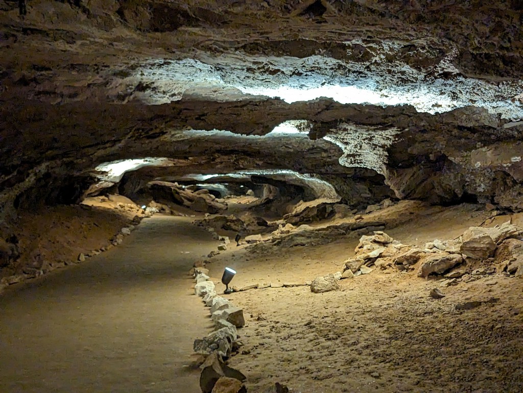 - There are a number of cave tours, hiking, and camping options at Mammoth Cave. Tours start with an announced bus ride (or walk) from the visitor center. We opted for the ‘Cleaveland Avenue Tour’ (1 mile, 200 down stairs, 2 hours, moderate difficulty; more if the elevator is broken), which is a guided walk through a wide tube with amazing views and stops to view gypsum formations. The former ‘Snowball Dining Room’ ends the walk with an elevator ride up to an awaiting bus back to the visitor center. Other tours vary in length, difficulty, historical vs. geological, etc. Be sure to book tickets early (they sell out!) and review tours for the best options for your group. The visitor center is surrounded by woods, cabins, and picnic areas. You won’t need to pay admission to enter the park, but you will have to pay for cave tours.