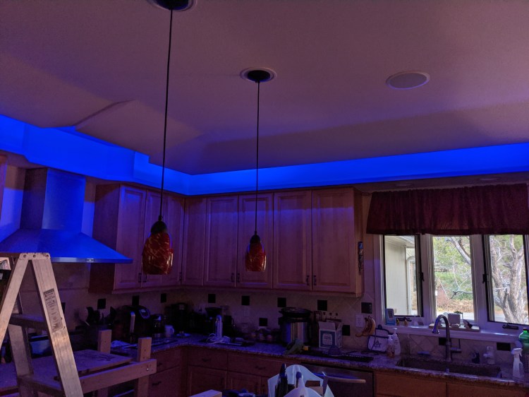 Replaced fluorescent tubes meant to provide kitchen mood lighting with multi-color LED strips.